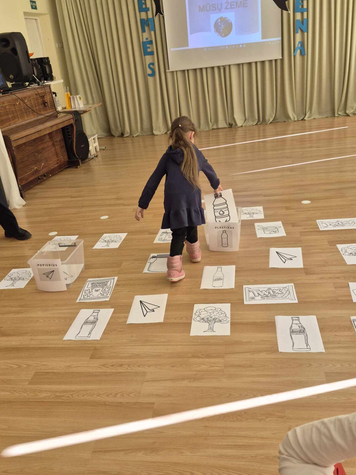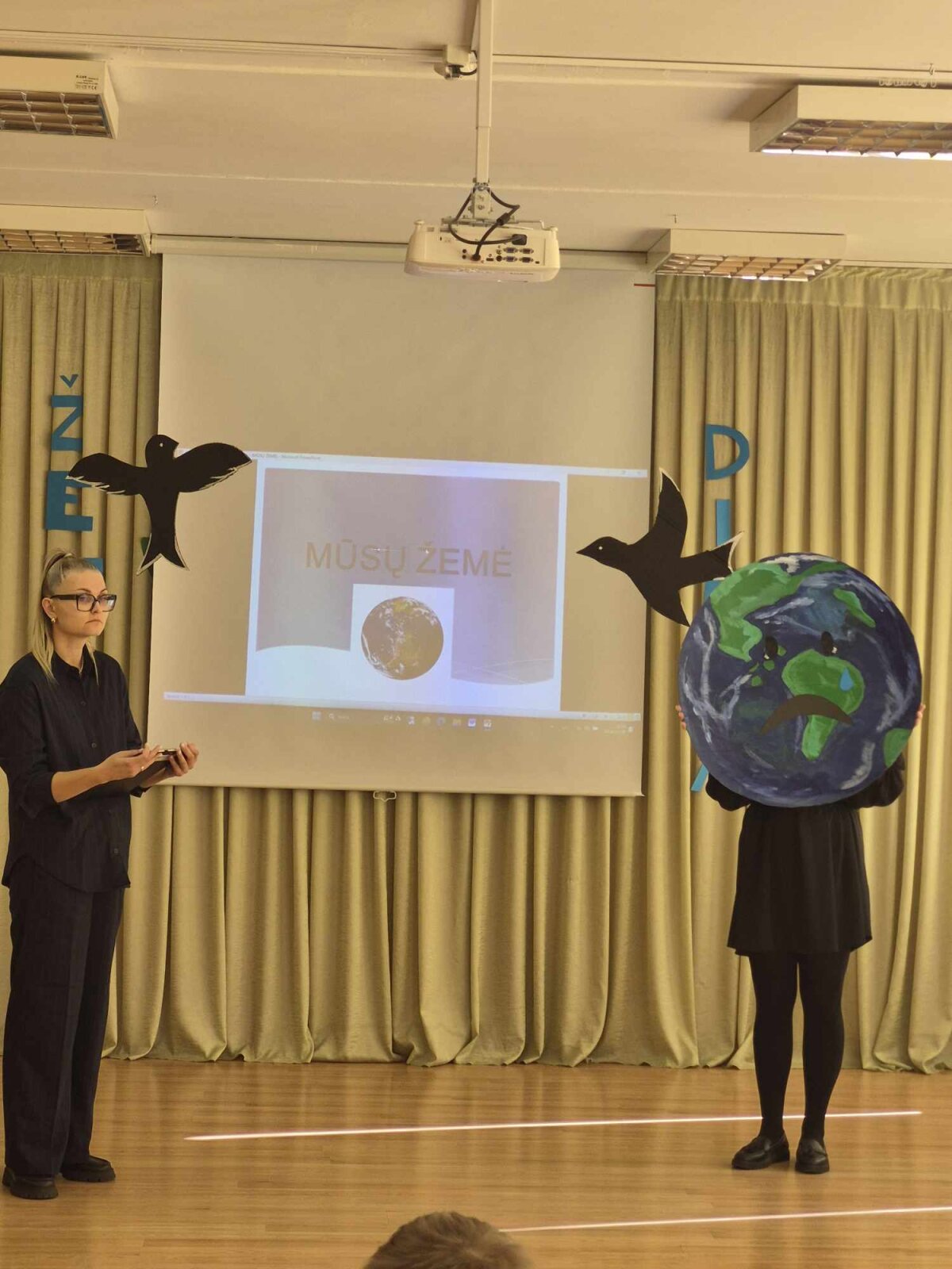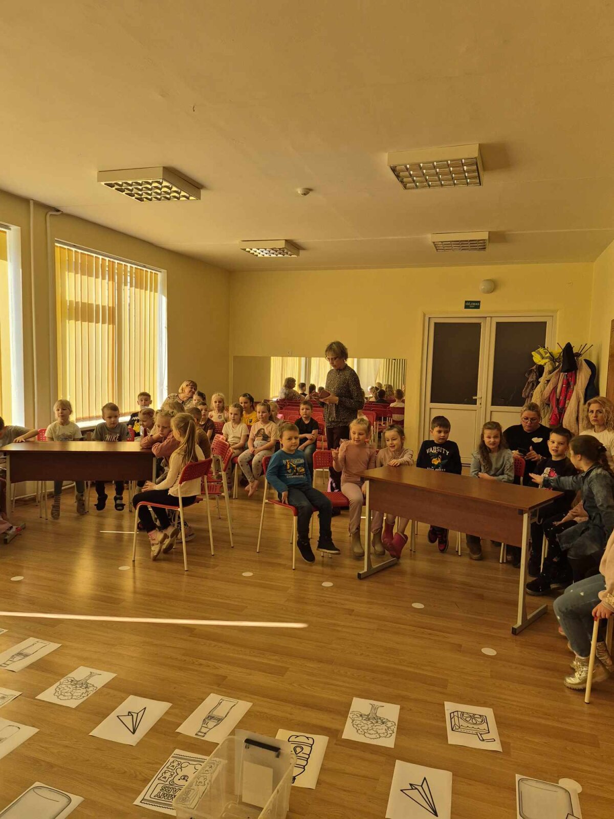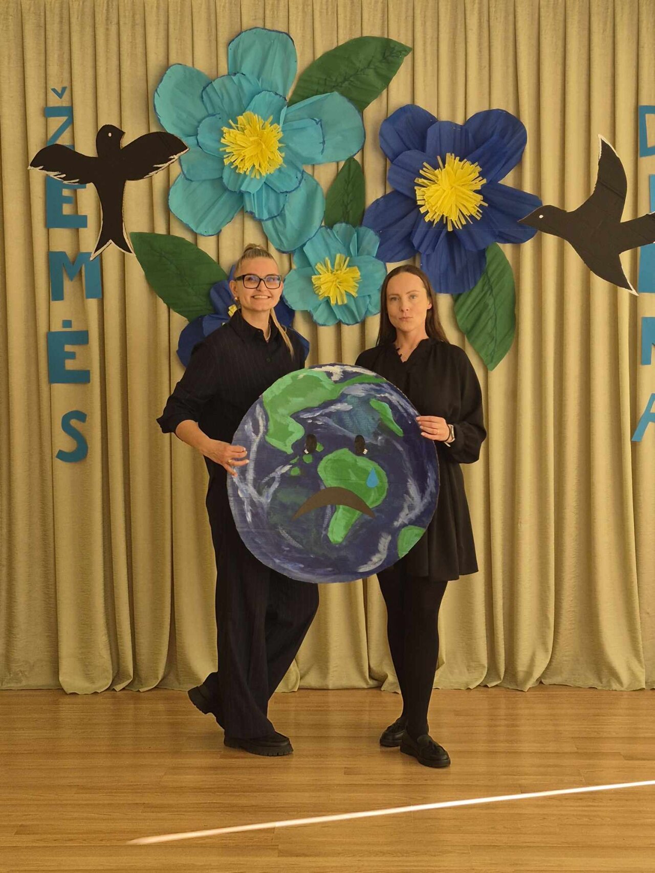 Renginį vedė ir vaikus į žinių kelionę vedė mokytojos Karolina ir Greta. Jos parengė įtraukiančias užduotis, kurios privertė susimąstyti, pagalvoti apie mūsų Žemę: vaikai rūšiavo šiukšles, atsakinėjo į anketos klausimus, piešė piešinukus Žemei.